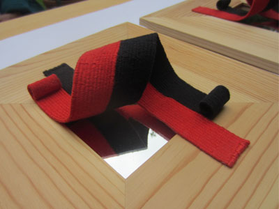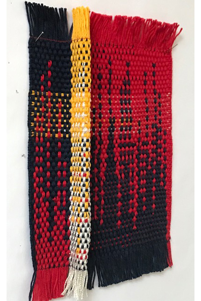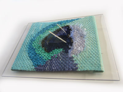 In tegenstelling tot de meeste andere weefsters weef ik op weeframen en op hardschuim.