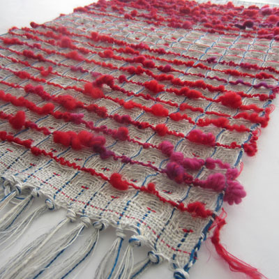 Ik houd van textiele ambachten waarbij vanuit draden 'stof' ontstaat, zoals breien, weven, haken, kantklossen. Soms heb ik de neiging om mij te verliezen in de techniek en kom dat slecht tot het gebruiken van die techniek in beeldend werk. Dat wilde ik niet met weven laten gebeuren.