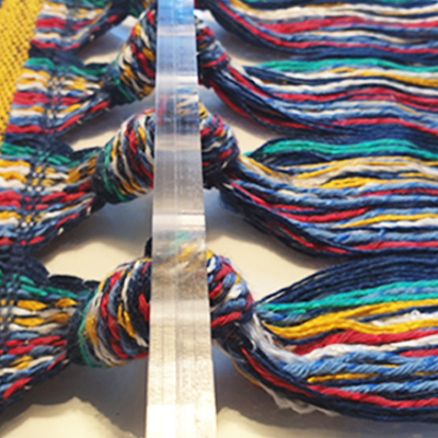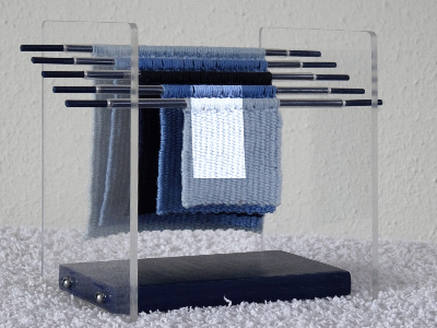 In tegenstelling tot de meeste andere weefsters weef ik op weeframen en op hardschuim.